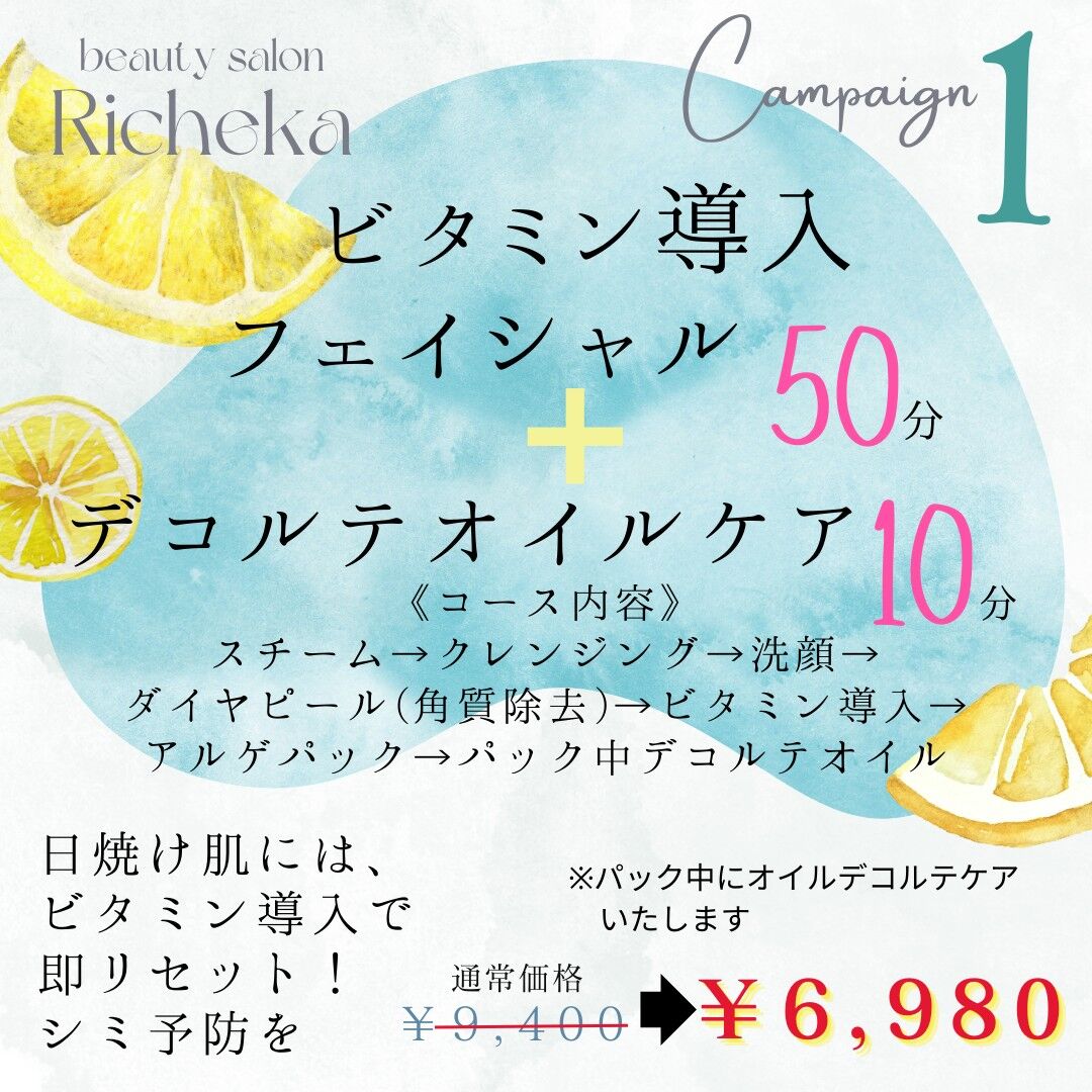 \ Campain1 /💍日焼け肌には、ビタミン導入で即リセットで、シミ予防を❤️60分